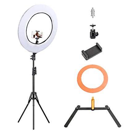 18'' Ring Light with 70''Stand,ZoMei Dimmable LED Ring Light with Tabletop Stand for Making up, YouTube Videos with ballhead, Phone Holder & Diffuser Cloth
