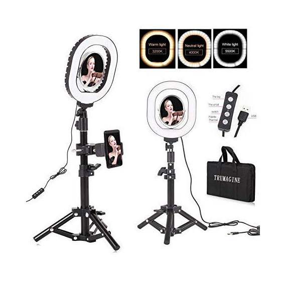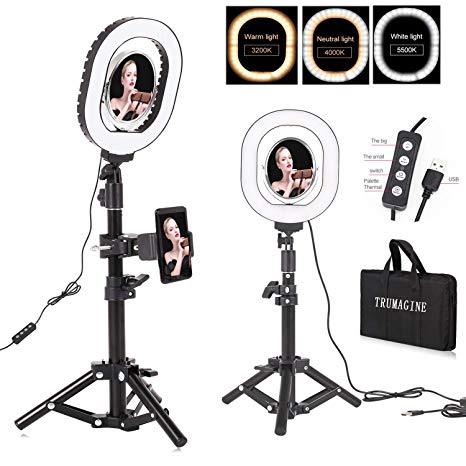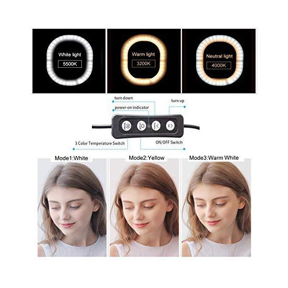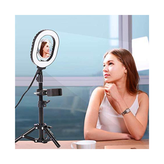 Make sure this fits by entering your model number. 【Superior Bright Dimmable 7×6" Oval LED Ring Light 】Equipped with 75 premium SMD LED, easily bright enough for close-up work, whether you're shooting video or simply using the light as a makeup aid; 3 Different Light Mode can beautify your faces,refine freckles, acne while taking photo.Each mode dimmable from 1% to 100%, it's easy to control both color and brightness with the in-line switches. 【USB Powered LED Beauty Light with Multi-function Makeup Mirror】No battery needed, you can use them just about anywhere there is a USB port, like laptop, PC, power bank, USB charger, AC adapter, and etc.Evening outdoor fill light can be used for travel / camping & taking photos/videos, etc.Easy to carry and Easy control on cord to power on/off or switch to the lighting mode you prefer.Comes with one portable multifunction mirror with 4×3" diameter, a necessary tool for makeup artists. 【180° Rotation Adjustable Stand】 -Constructed from top-grade aluminum alloy, stable enough to keep it securely in place without danger of tipping. Adjustable tripod extends from 9.5" to 17", gives you the perfect position you need for great shots.with Internationally common 1/4" screw head,can be used with other accessories.For make-up, live streaming, facebook video, selfie photos, filming, video recording, online teaching,youtobe video etc,or just works as desk tabletop lamp. 【Universal Cell Phone Holder,】Packaged with universal cell phone holder, very easy to use: It will compatible with most of smart phones, like iPhone X / 7 Plus, 7, 8, 8 Plus, X, 6, 6s, 5, 5s, 4, 4s /iPod touch/ Samsung/LG/Huawei/HTC,ect. Adjustable size: 2inch-3.5inch.The cell phone holder is 360 degree rotatable, It's also easy to carry for travel, camping, live streaming etc;best gift for traveling. 【Money Back Guarantee】100% Money Back Guarantee Or Ship You A Replacement,High quality, always keep a timely and friendly customer service response, please feel free to contact us if you have any questions, we will give you a satisfactory answer,please rest assured to buy! 【Package information】:1xSMD 7×6 inch Oval Ring Light with USB Plug,1xStrong Stand ,1xMultifunction Mirror,1xUniversal Clamp and Smart Phone Holder,1x Portable Carrying Case,1xInstruction Manual.