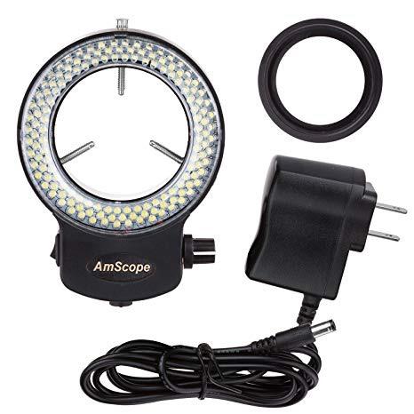 AmScope LED-144B-ZK Black 144 PCS Adjustable LED Ring Light for Stereo Microscope & Camera, with Power Adapter