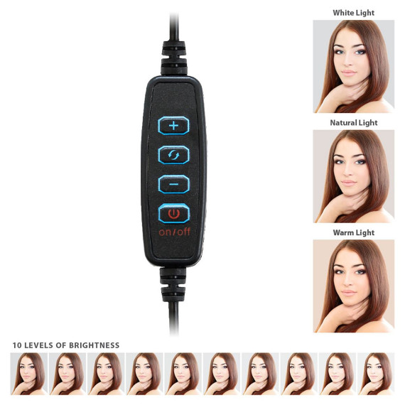 Enhance your social media posts with the Bower® 8-In. Selfie Ring Light Studio. You are a creator and the Ring Light Studio kit transforms your smartphone into a professional photo studio, allowing you to take videos at night or take great selfies in dark areas. It's great for creating live videos with your phone or computer, vlogging, live videos, video chats, social media, live streaming, health and beauty, and more. This kit includes an 8-in. ring light, a tripod that extends from 17.5-in. to 51 in. tall, a phone holder with a pivot mount, a wireless remote shutter, and a smartphone clip adapter. The ultra-wide range allows you to create professional-looking videos with ease. Choose from 10 different levels of brightness and 3 different color modes (white light, natural light, or warm light) for the best videos. Enhance your videos and social media posts with the Bower® 8-In. Selfie Ring Light Studio.