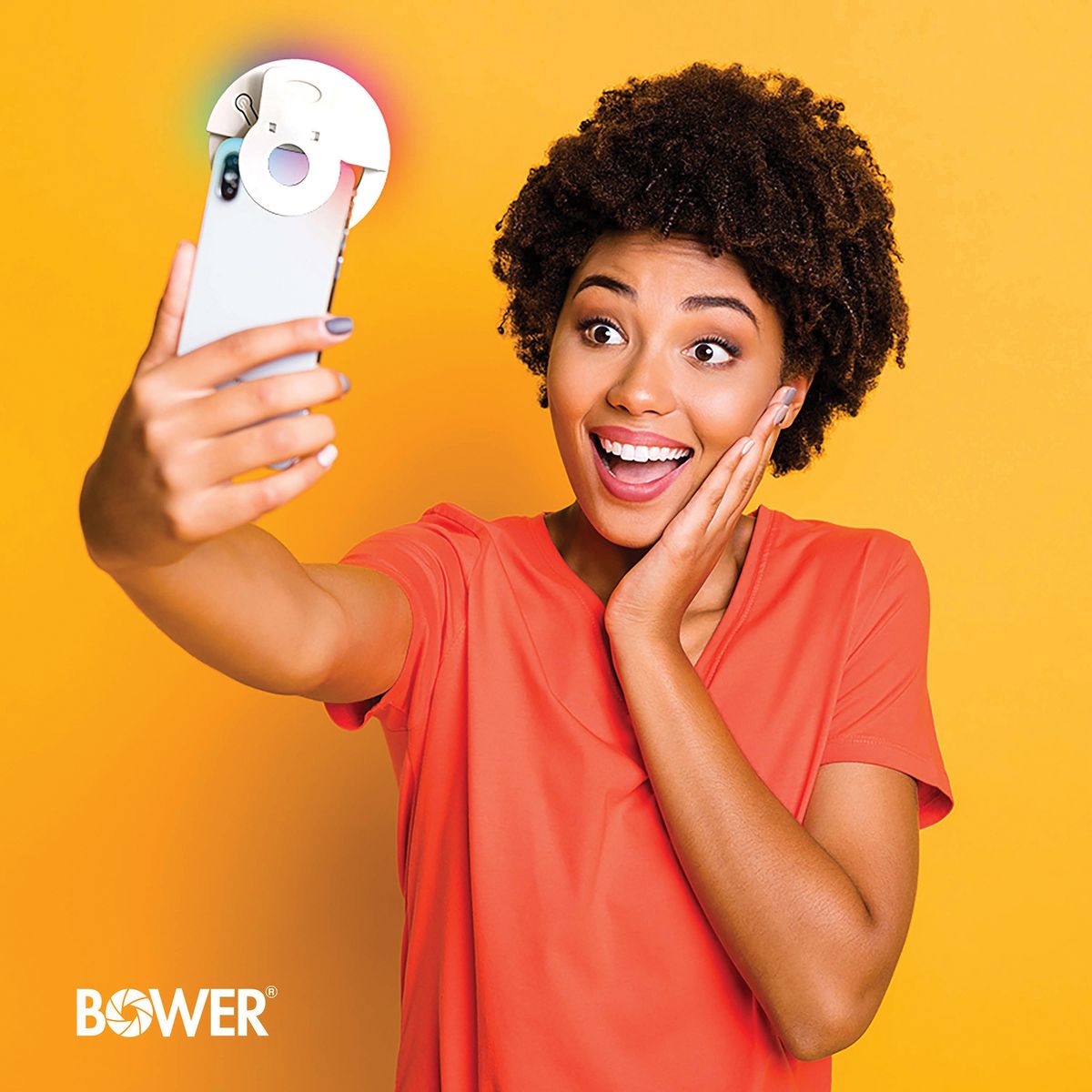 The Bower RGB Clip-On Selfie LED Ring Light for Smartphones offers a fast and easy way to enhance photos and videos. It's the ideal tool for selfies and social media. This rechargeable clip-on light is compact for on-the-go use and is compatible with most major smartphones. With ranging color temperatures (which include white light modes), sleek design, and easy use, you'll never want to leave home without it.