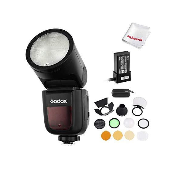Godox V1-C Flash with Godox AK-R1 Accessories Kit for Canon, 76Ws 2.4G TTL Round Head Flash Speedlight, 1/8000 HSS, 1.5 sec. Recycle Time, 2600mAh Lithimu Battery, 10 Level LED Modeling Lamp