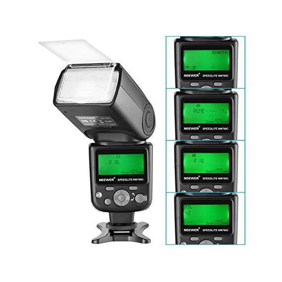 Neewer NW760 Remote TTL Flash Speedlite with LCD Display for Canon 7D Mark II, 5D Mark II III IV III IV 1300D 1200D 1100D 750D 700D 650D 600D 550D 500D 100D 80D 70D 60D and Other Canon DSLR Cameras