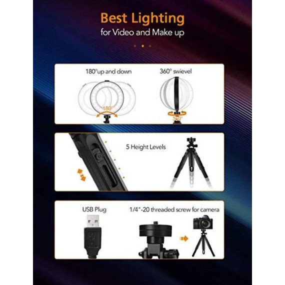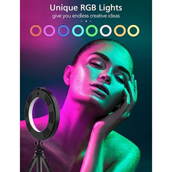 Ring Light 2019 Newest, 6" Dimmable RGB O Ring Light with Tripod Stand and Cell Phone Holder for Makeup, YouTube Video, Self-Portrait, Mini Desktop Led Ring Light Selfie Light Ring for Smartphone
