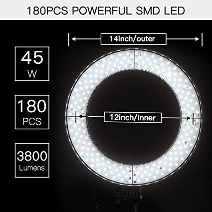 SAMTIAN LED Ring Light 14 inches Outer YouTube Light 180 Dimmable LED Lighting Kit with 2M Light Stand, Cradle Head, Phone Holder for Video Shooting, YouTube Video, Portraiture, Makeup