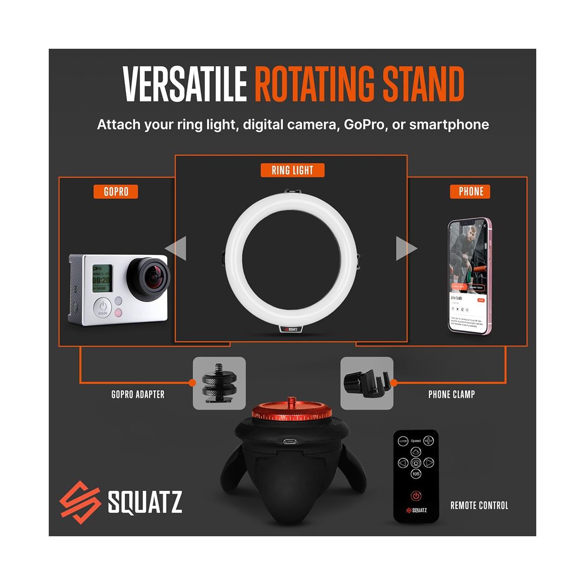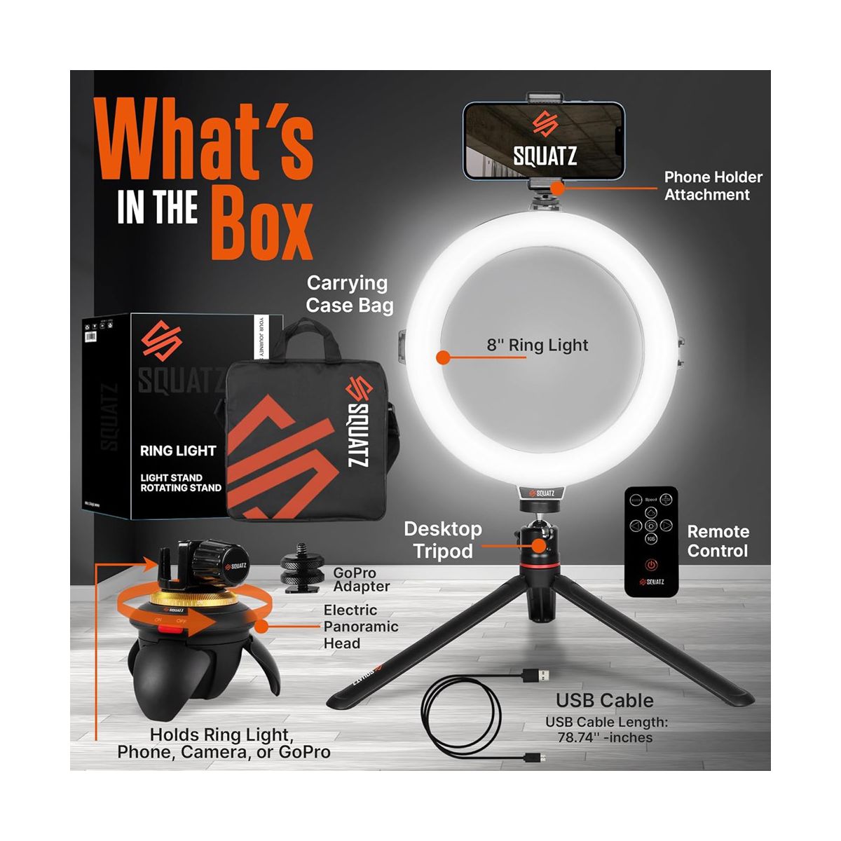 SQUATZ 8'' Small Ring Light for Desk with Stand and Phone Holder