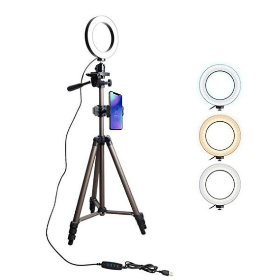 Tryone Ring Light Stand - Phone Tripod Stand, Live Stream Stand with 5.7” LED Ring Light for YouTube Video or Makeup, 3 Light Modes & 10 Brightness Levels