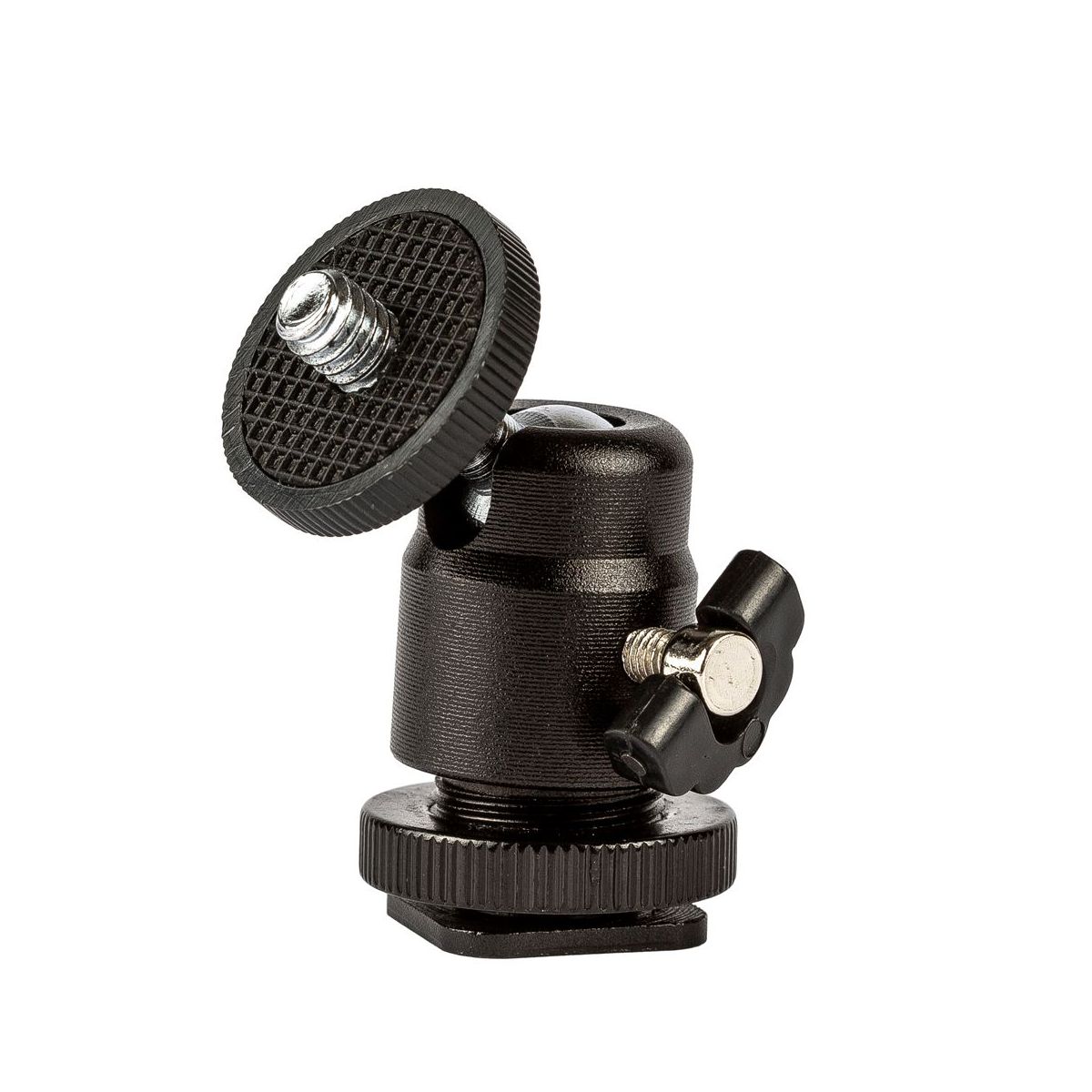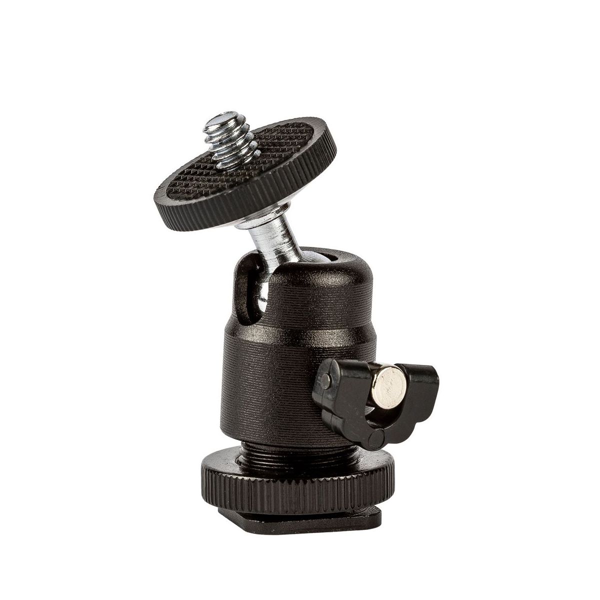 Ball head hot shoe mount with 1/4'' screw for DSLR Cameras such as Canon, Nikon, Pentax, Panasonic, Fujifilm & Sony.