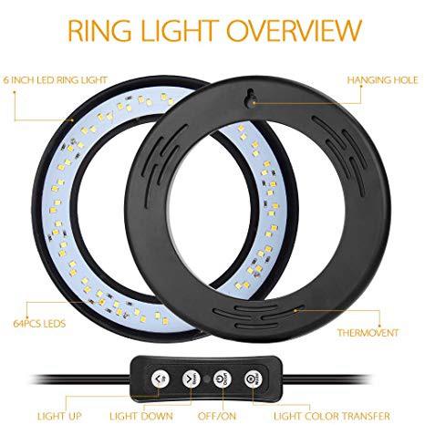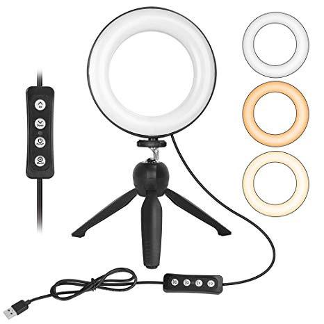 ZOMEI 6 inch Dimmable LED Ring Light with Stand for Live Stream Video Shooting Selfies, Mini Tabletop Ring Light with 3 Color Mode 11 Level Brightness