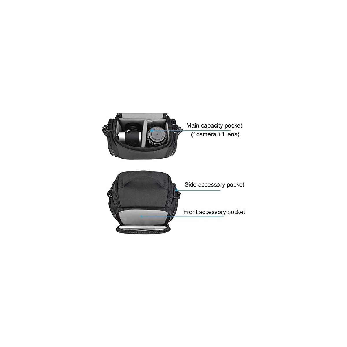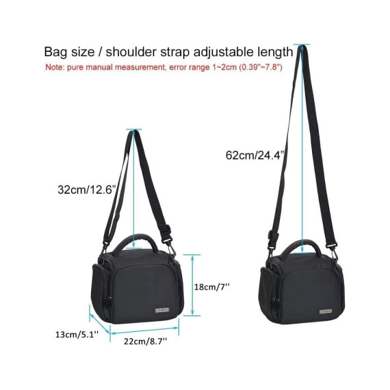 • Size: 8.7*5.1*7 inches/22.1*12.9*18 cm; Internal size: 7.5*4.4*6.3 inches/19*11*16 cm. Fits 1 camera +1 spare lens + mobile phone + filter + SD card.
