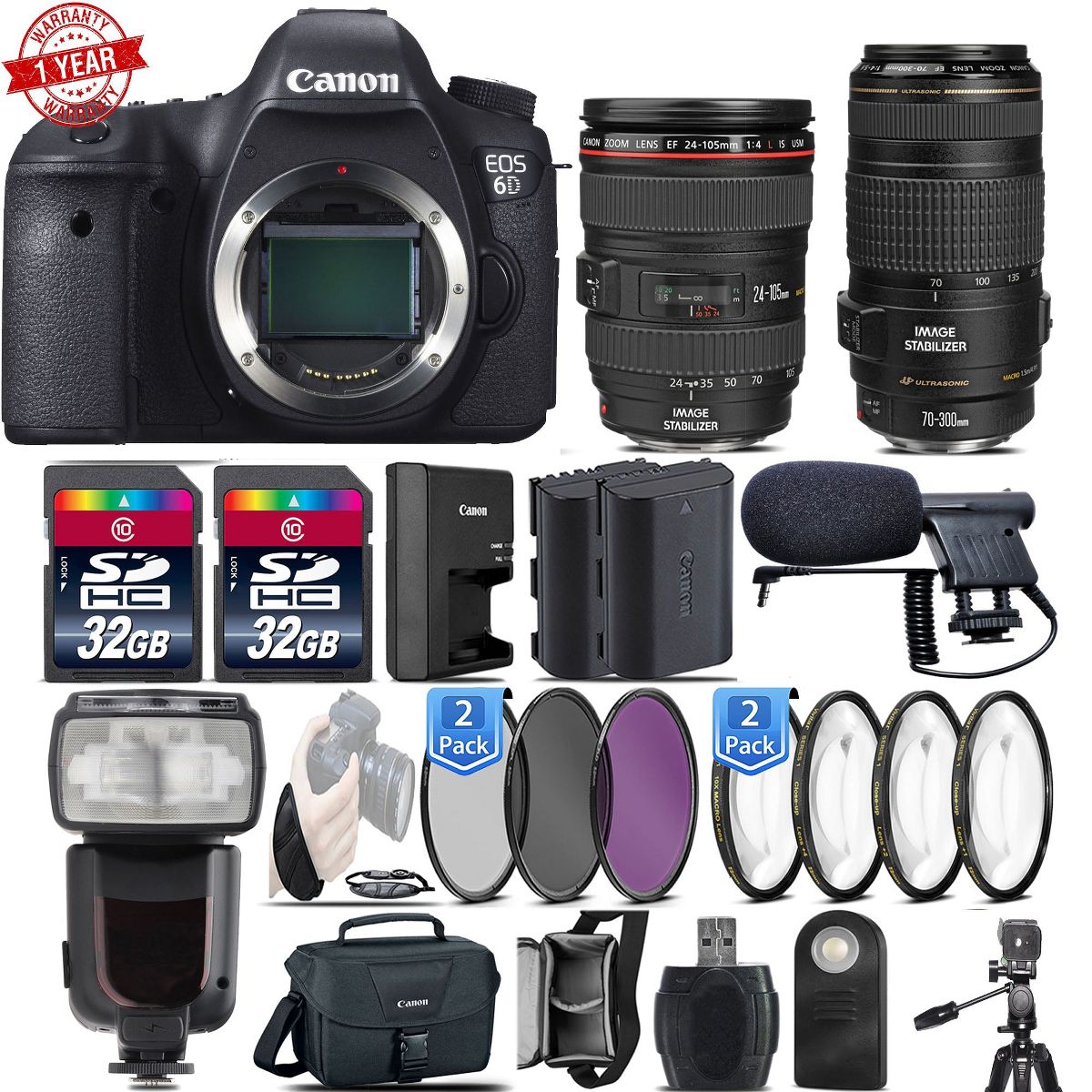 Canon 6D DSLR Full Frame 20.2MP Camera + 24-105mm 4L IS USM + 70-300mm IS USM Mega Bundle