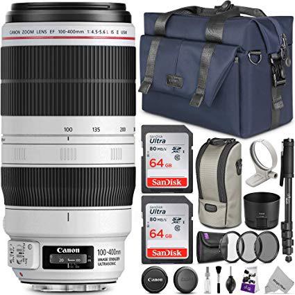 Canon EF 100-400mm f/4.5-5.6L is II USM Lens w/Advanced Photo and Travel Bundle - Includes: Altura Photo Bag, UV-CPL-ND4, Monopod and 2pcs SanDisk 64gb SD Card
