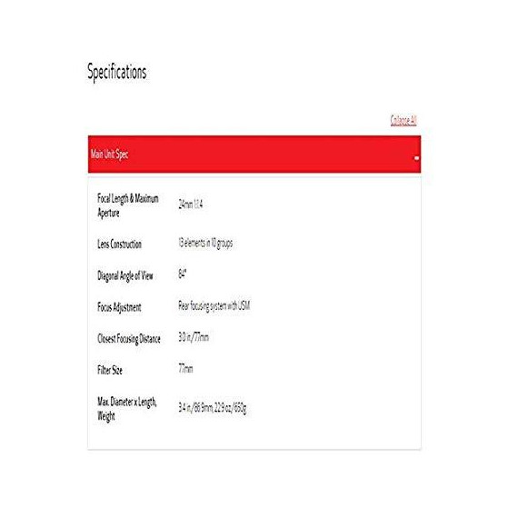 Canon EF 24mm f/1.4L II USM Wide Angle Lens - Fixed