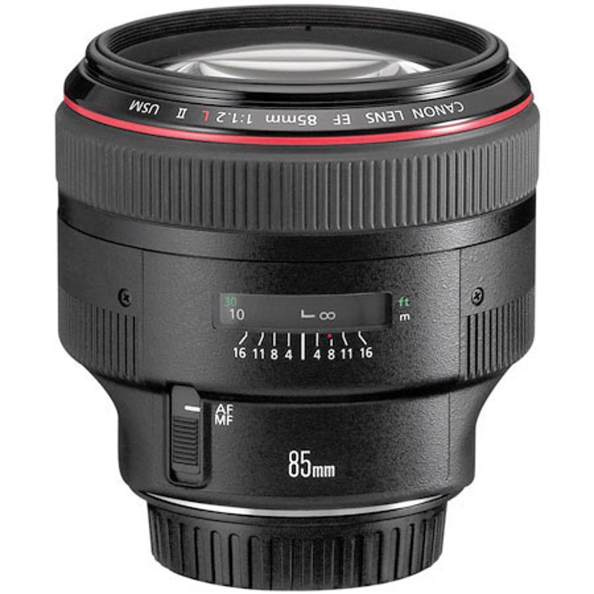 Retaining the impressive optical performance and large aperture of the original Canon EF 85mm f/1.2L lens, this revamped medium telephoto lens employs a ring-type Ultra Sonic Motor (USM), high-speed CPU, and optimized algorithms to achieve an autofocus speed that's approximately 1.8x faster than the original. This high-speed autofocus system combines with the circular aperture to create a shallow depth of field that brings attention to the subject and blurs the background, an ideal effect for portraits and weddings. In addition, the lens's floating optical system includes an aspherical lens element that suppresses aberrations and produces an excellent imaging performance.SpecificationsFocal length: 85mm Maximum aperture: f/1.2 Lens construction: 8 elements in 7 groups Angle of view: 28 degrees @ 30 feet Focus adjustment: Autofocus with full-time manual Closest focusing distance: 3.2 feet Filter size: 72mm Dimensions: 3.6 inches in diameter and 3.3 inches long Weight: 36.2 ounces Warranty: 1 year Retaining the impressive optical performance and large aperture of the original EF 85mm f1.2L USM, this new medium telephoto lens uses a ring-type USM, high-speed CPU, and optimized algorithms to achieve an autofocus speed approximately 1.8x faster than the original. The high-speed AF and circular aperture create a shallow depth-of-field that brings attention to the subject and blurs the background, which is ideal for portraits and weddings. The floating optical system, which includes an aspherical lens element, suppresses aberrations and ensures excellent imaging performance.Product DescriptionThe Canon EF 85mm f/1.2L II USM Medium Telephoto Lens uses a ring-type USM, high-speed CPU and optimized algorithms to achieve an autofocus speed approximately 1.8x faster than the original. The high-speed AF and circular aperture create a shallow depth-of-field that brings attention to the subject and blurs the background, which is ideal for portraits and weddings. The floating opt