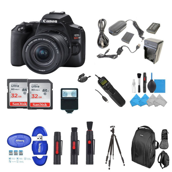 Canon EOS Rebel SL1/250D (SL3) DSLR W/18-55 Camera 2x 32GB Class 10 SD Memory Card Accessory Bundle