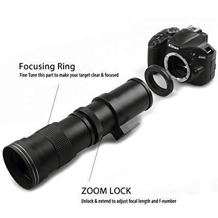 Lightdow 420-800mm f/8.3 Manual Zoom Telephoto Lens + T-Mount for Nikon D5500 D3300 D3200 D5300 D3400 D7200 D750 D3500 D7500 D500 D600 D700 D800 D810 D850 D3100 D5100 D5200 D7000 D7100 Camera Lenses