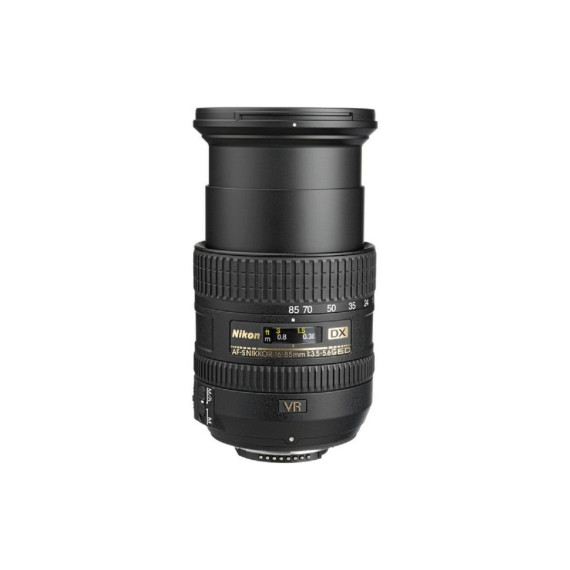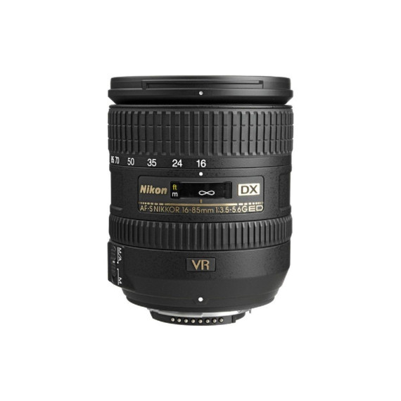 The AF-S DX NIKKOR 16-85mm f/3.5-5.6G ED VR Lens from Nikon is a compact, lightweight, fully-featured zoom lens that covers a wide 5.3x focal zoom range, and is ideal for a wide range of shooting situations. It is compatible for use with Nikon DSLR cameras with the smaller DX format sensor. This lens offers an equivalent focal length in 35mm terms of 24-127.5mm. It will conveniently cover everything from tight indoor portraits to medium telephoto shots.