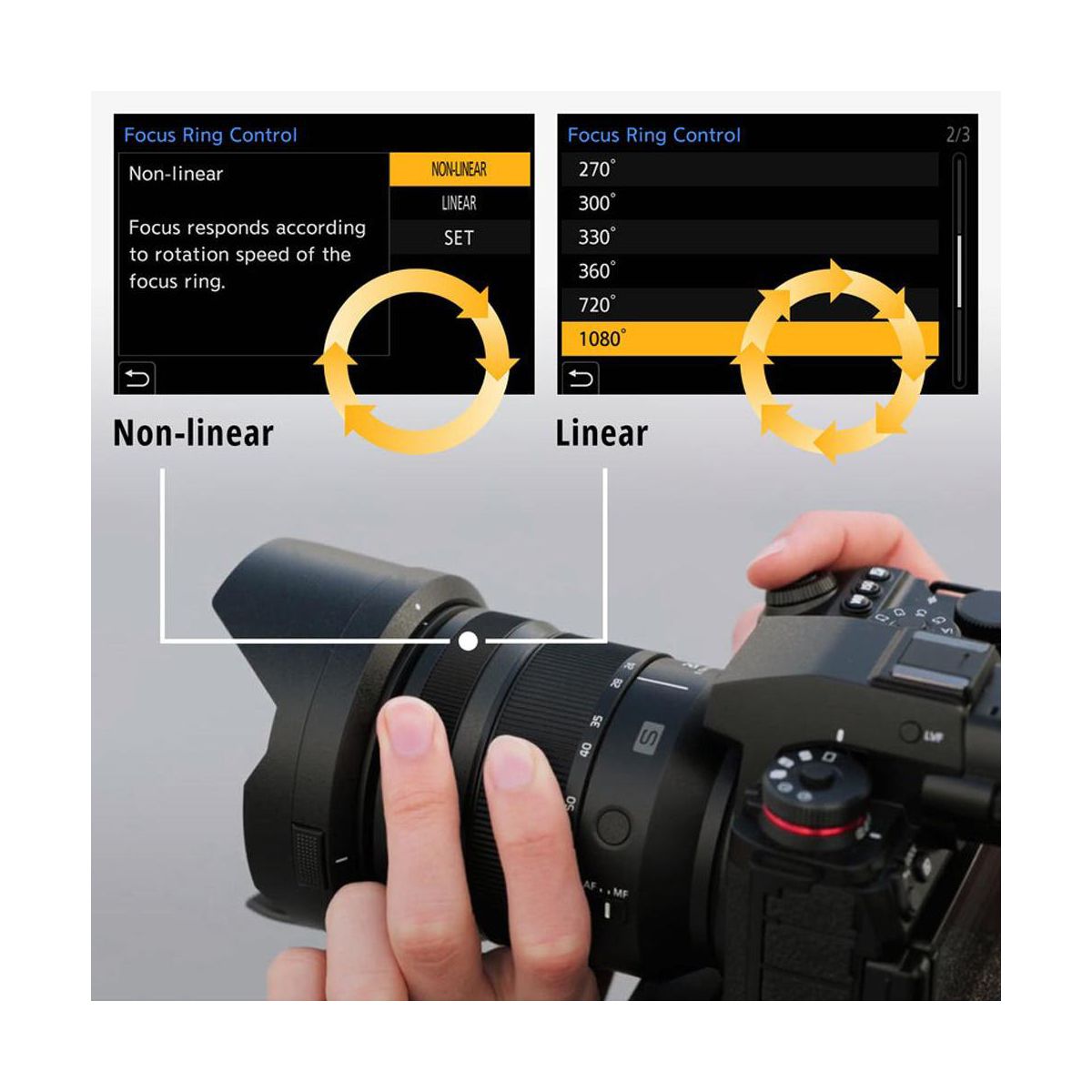 Adjust focus while zooming for seamless transitions between subjects. Choose non-linear mode for fast response or linear mode for consistent, precise shifts—giving you mechanical-like control and more ways to shape your creative vision.