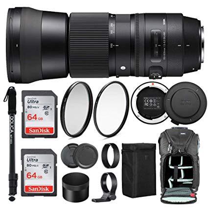 Sigma 150-600mm 5-6.3 Contemporary DG OS HSM Lens for Canon DSLR Cameras 745101 w/USB Dock + Two 64GB SD Card Advanced Photo & Travel Bundle
