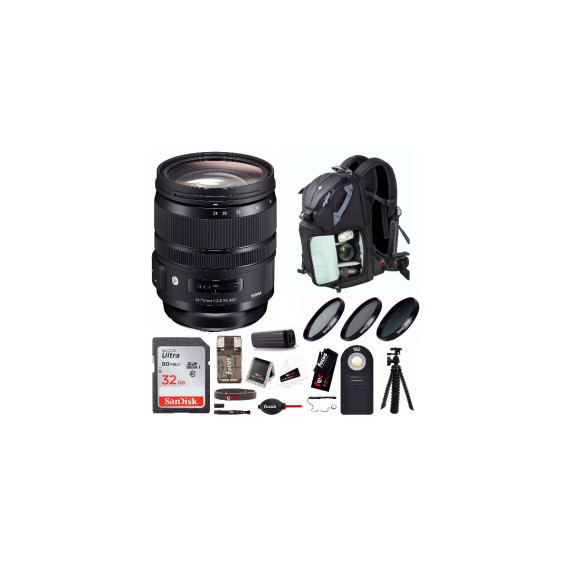 The Sigma 24-70mm F2.8 DG HSM OS Art is a premium workhorse zoom lens designed for the latest high megapixel DSLRs. A constant aperture of 2.8 through the zoom range makes this a highly versatile tool and a brand new Optical Stabilization (OS) system helps compensate for camera shake. Though a common focal length, the Sigma 24-70mm Art brings a new level of usability and durability featuring a rugged metal barrel and an emphasis on image quality. Building off the experience from the 12-24mm Art, the aspherical elements used in the 24-70mm f/2.8 OS Art undergo a highly precise level of polishing, producing elements thicker in the center than on the edges. This process creates stunning image quality and beautiful circular bokeh. Art LensEngineered for those who see photography as an expression of self, Sigma’s Art line offers sophisticated optical performance and abundant expressive power to deliver faithfully on your artistic vision.DG - DG for DigitalSigma's DG lenses are specifically designed to deliver the ultimate level of performance on full frame digital SLRs. Sigma DGs also maximize the abilities of 35mm SLR cameras and APS-C size DSLRs. Thanks to a complete and comprehensive approach to the correction of chromatic aberrations; you will experience incredible image clarity and smoothness. Specific attention was paid to helping eliminate color fringing often caused by lateral chromatic aberration, a problem that is magnified at high resolution in digital photography. DG lenses provide exceptionally high contrast along with subtle gradations in tone and color. The super Multi-Layer coating, along with Sigma's optimized optical design work reduces reflections between the image sensor and the lens surfaces. The large image circles of DG lenses mean there will always be enough peripheral illumination to avoid vignetting.HSM - Quiet and Fast AutofocusingHSM lenses employ a motor powered by ultrasonic waves that produce a quiet, yet high-speed AutoFocus. You can enjoy high performance with low noise in a variety of shooting situations.IF – Inner FocusTo ensure stability in focusing, this lens moves the inner lens group without changing the lens’ physical length.OS - Optical StabilizerThis function utilizes a built-in mechanism that compensates for camera shake. It dramatically expands photographic possibilities by alleviating cameras movement when shooting by hand held camera.Outstanding Optical PerformanceThree SLD (Special Low Dispersion) glass lens elements and four aspherical lens elements minimize optical aberrations. To ensure outstanding edge-to-edge image quality, the optical system minimizes coma, which causes points of light to streak, and transverse chromatic aberration, which cannot be corrected via aperture control. The optical system also minimizes distortion, which can be especially prominent in wide-angle shots.Bokeh That’s a Cut AboveAt wide-open aperture, this lens offers outstanding photographic expression. The area in focus is extremely sharp, while the background exhibits a beautiful bokeh effect with only slight spherical aberration. Since large-diameter zoom lenses are often used at wide-open aperture, SIGMA has paid close attention to the shape of the bokeh, aiming for perfect circularity. Perfect for capturing every moment..