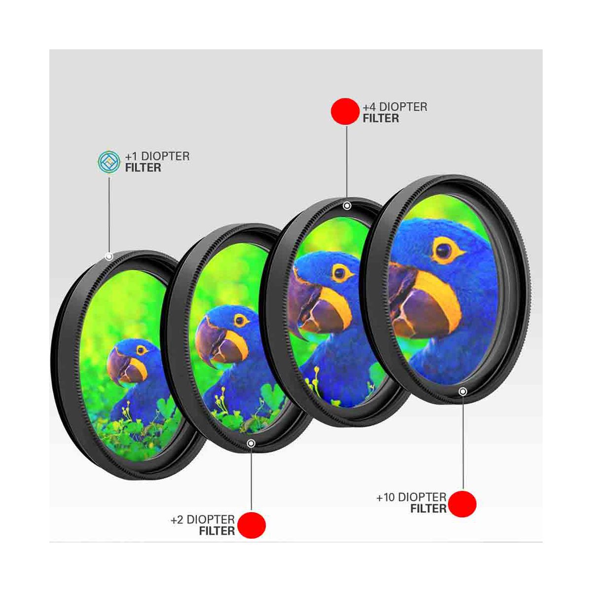- Each lens has 55mm front threads for stacking other close-up lenses on top of one another to increase the overall effect.