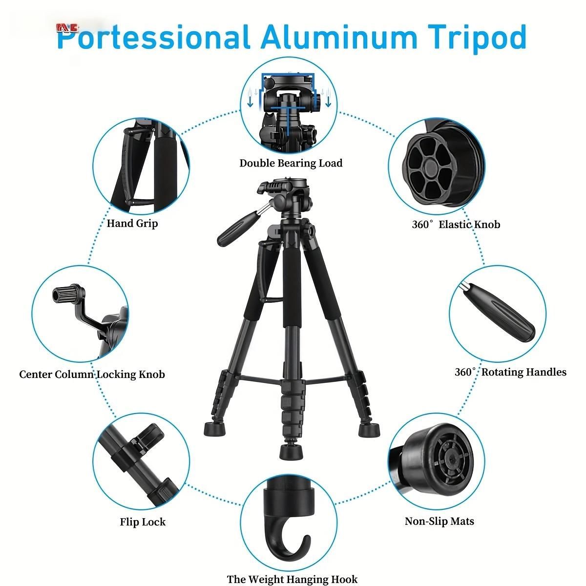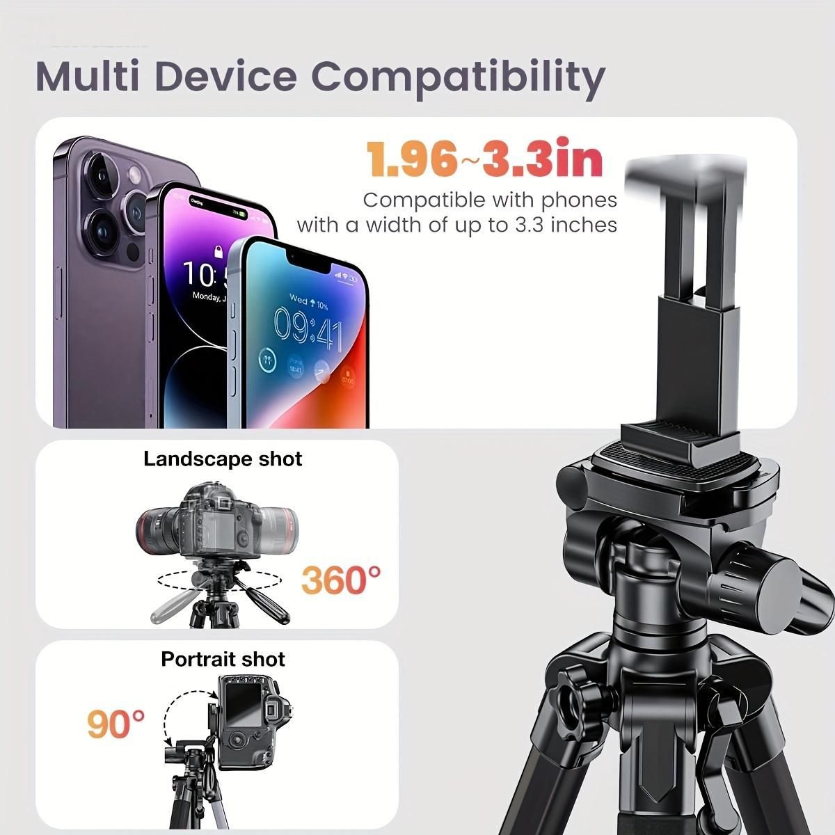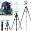 This professional 74-inch tripod offers exceptional stability, versatile shooting angles, and broad device compatibility. Engineered with durable aluminum, it supports up to 15 lbs, making it ideal for photography, video, and streaming with cameras, smartphones, scopes, and projectors.