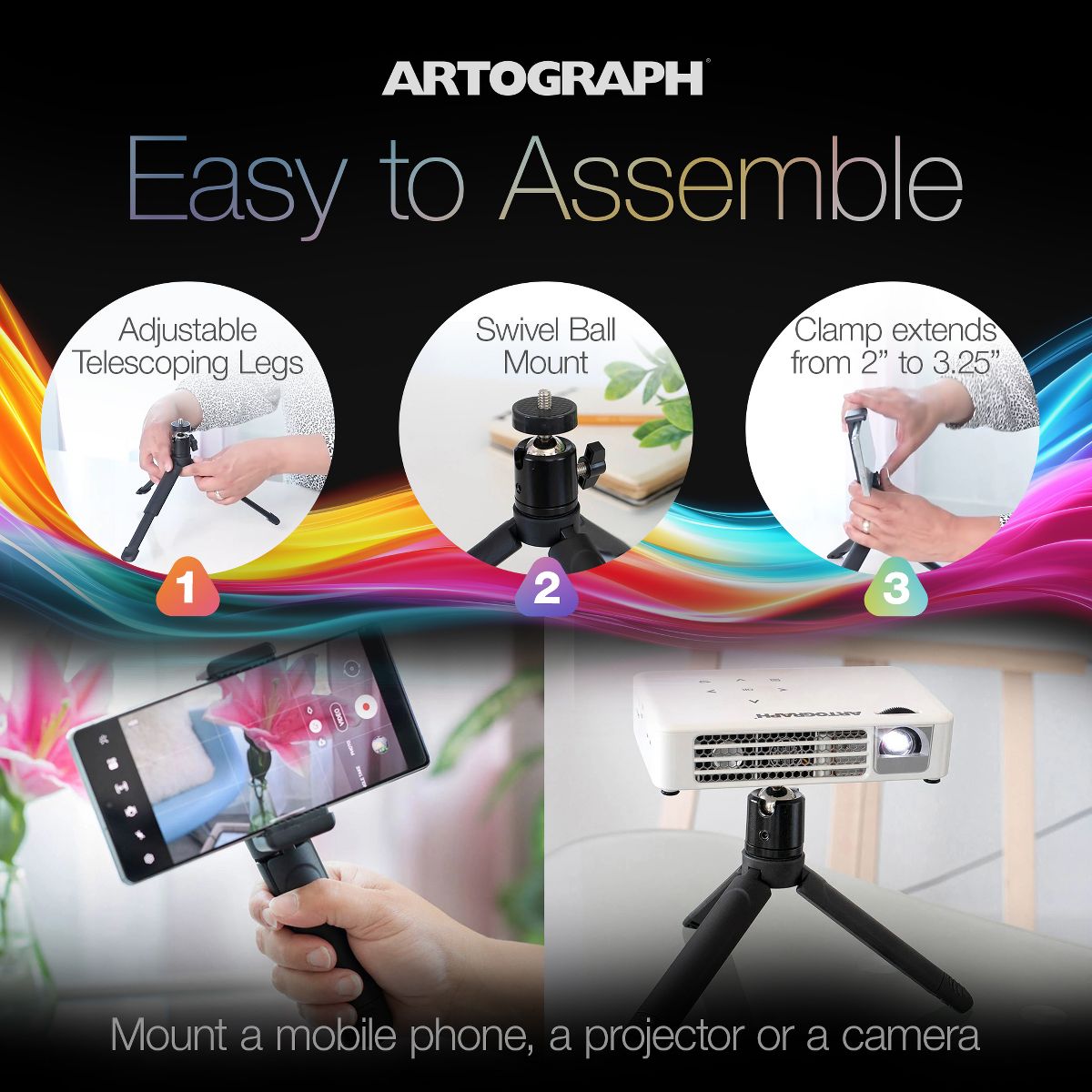 Artograph Mini Tripod Tabletop & Handheld Stand for Digital Projectors & Phones, Lightweight, Portable and Convenient Accessory for Home Photography