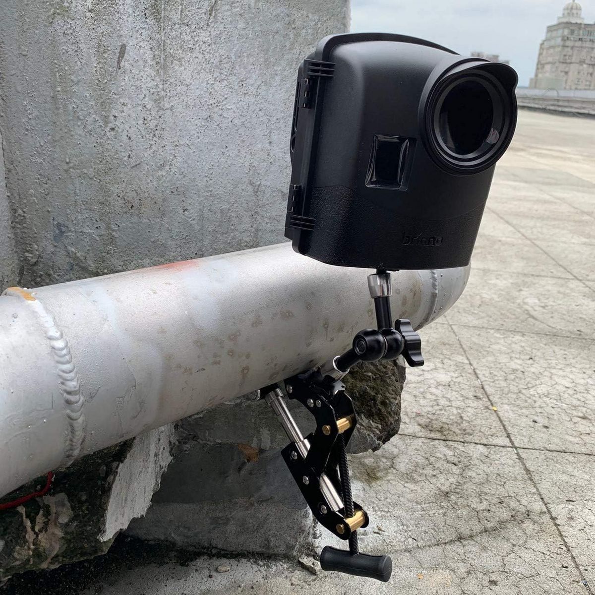 The Brinno Camera Clamp Plus is the ultimate versatile camera mount designed for time-lapse enthusiasts and professionals alike. Built with industrial-grade durability, it features a rust- and corrosion-resistant design, a 110lb clamp load capacity, and universal compatibility with a ¼-inch female thread, making it the perfect companion for Brinno’s ATH2000 Housing and other camera setups. With its innovative cubic jaw design, this magic arm camera mount securely attaches to any surface. Choose between irregular or grooved grip sides for maximum hold. The clamp opens from 0.04 to 3.5 inches and extends to 10.6 inches with the extension pole, ensuring a stable setup in any environment. The 360-degree rotating tripod head with a 90-degree tilt provides unmatched flexibility, allowing for precise angle adjustments to capture every critical moment of your project. Designed for ease of use, the soft plastic aluminum handlebar ensures quick and secure fastening - no extra tools required. Once locked in place, this camera arm mount stays firm and steady, guaranteeing uninterrupted footage for construction monitoring, time-lapse recording, and more. Brinno’s Camera Clamp Plus is a must-have tool for professionals seeking stability, flexibility, and reliability in every shot. This magic arm clamp mount is ideal for versatile camera mounting needs.