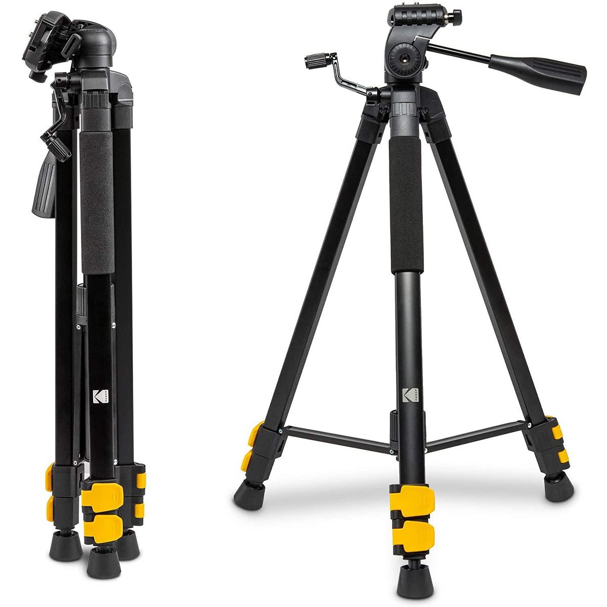 Get a distinctive angle for any picture using the 3-way head to tilt or pan your camera or phone. The adjustable, convenient design makes this camera tripod stand the perfect travel partner for any photographer, YouTuber, or vlogger. Set up this 3-section heavy duty tripod anywhere to get your perfect snapshot, then easily pack up and place it in your included carrying case. Use this durable, reliable camera stand tripod to take countless photos. Set up for the ideal picture at another event, trip, party, or landmark with this state-of-the-art compact tripod from Kodak.