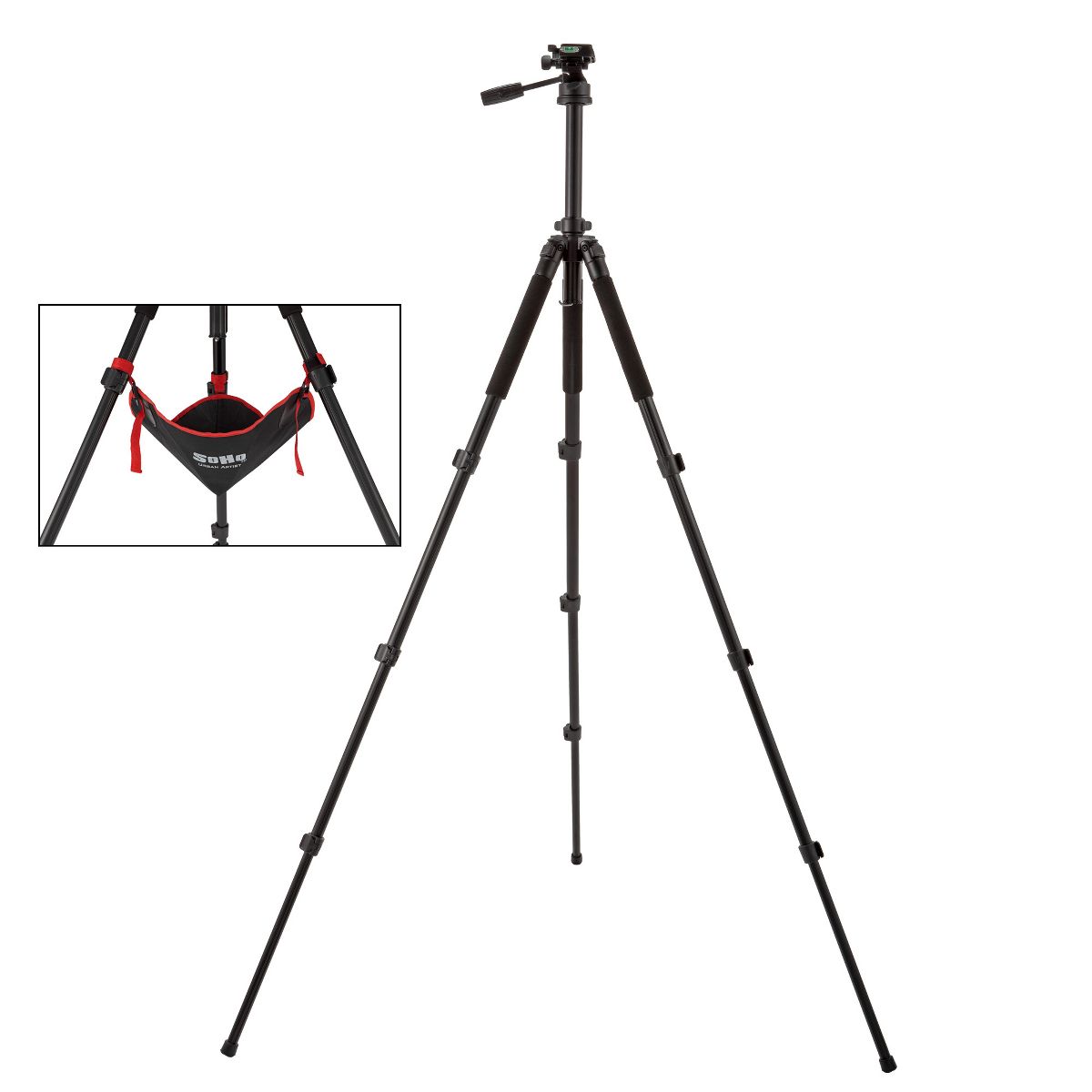 Introducing the SoHo Urban Artist Deluxe Aluminum Tripod, a heavy-duty professional camera tripod, perfect for DSLR cameras. This durable metal construction tripod is lightweight and compact, perfect for travelers on the go. Its strength and durability make it an ideal tripod for camera heavy duty usage. The SoHo Urban Artist Deluxe Aluminum Tripod is also perfect for shooting in tight spaces or odd angles, even in windy conditions. It offers fully customizable adjustments supported by a 3-way tilting head, providing you with the versatility needed for any shooting scenario.