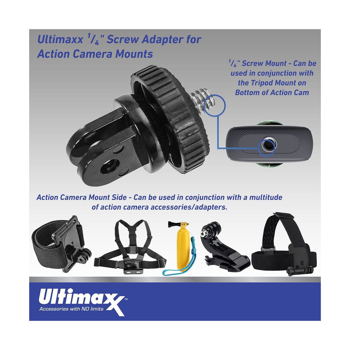 Ultimaxx 1/4" Screw Adapter for Action Camera Mounts / Go-Pro / GoPro