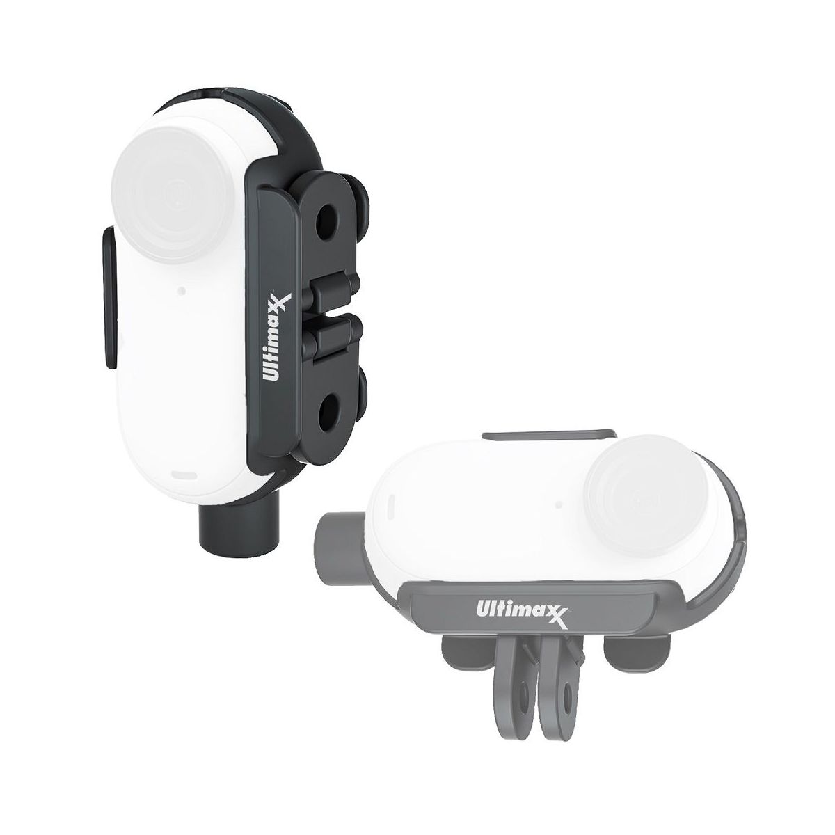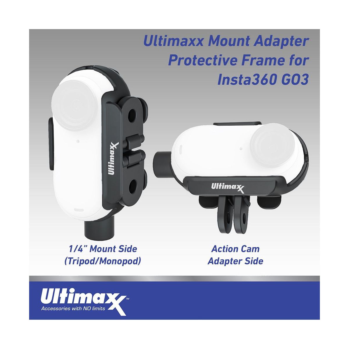 The Ultimaxx Mount Adapter Protective Frame for GO 3 supports both horizontal and vertical shooting with a 1/4in adapter and an action camera adapter. Foldable Design. While using 1/4in port, you can make action camera adapter "invisible" by folding it to the mount. The specially designed mount can perfectly fit GO 3 and lock it tightly.
