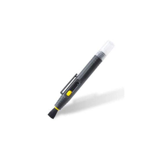 The small pen-style design easily fits in your pocket or camera bag. It features a retractable brush on one end and a spray cleaner on the other end.