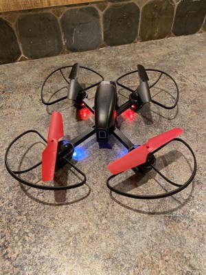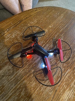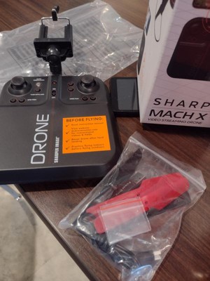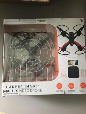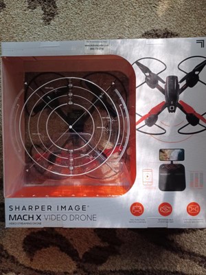 Capture stunning panoramic videos and photos of landscape, crowds, parties, and more with SHARPER IMAGE Mach X Video Drone! This beginner-friendly drone is the perfect co-pilot for getting that amazing bird's-eye-view footage you want. Glowing built-in LED lights make the stunts even more impressive, day or night. This impressive plane is packed with exciting features to make your flights even more enjoyable. Auto orientation flight control and gyro stabilization flight control keep the plane steady and help it climb up to 150 feet in the air. Safety landing pegs and the assisted landing feature ensure a soft landing when your flight is over. And removable blade guards keep your drone protected. The quadcopter includes a built-in 3.7V 550 mAh rechargeable lithium battery. When it runs out of juice, simply plug it in with the included USB charging cable and you'll be ready to hit the skies in no time. The remote takes 6 AA batteries (not included).