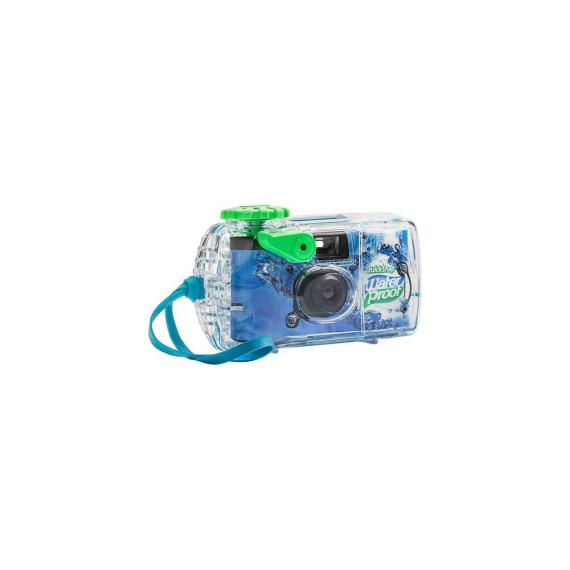 Pre-loaded with ISO 800 35mm film, this all-weather, one-time-use camera is ready for any adventure. The big-size lever-type shutter release on the front of the camera and a top-mounted film advance knob makes it very easy to operate. It's ideal for shooting outdoors in wet and snowy conditions, and operates up to 35 feet underwater!