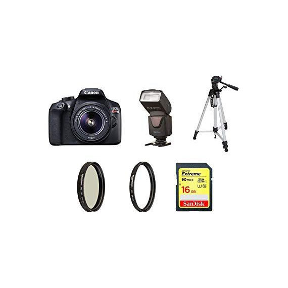 Canon Digital SLR Camera Kit [EOS Rebel T6] with EF-S 18-55mm Zoom Lenses, 60 inch tripod, 16GB memory card, UV filter, Polarizer and Flash - Black