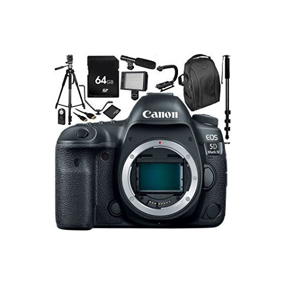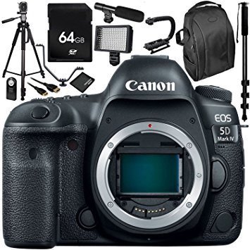 Canon EOS 5D Mark IV DSLR Camera (Body Only) - 11PC Accessory Bundle Includes 64GB SD Memory Card + 72" Full-Size Tripod + Flash Bracket + 160 LED Video Light + Professional Backpack + MORE
