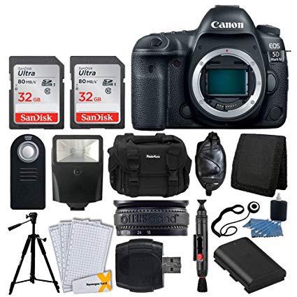 Canon EOS 5D Mark IV DSLR Camera Body + SanDisk 64GB Memory Card + Extra Battery + Wireless Remote + Large Gadget Bag + Slave Flash + Heavy Duty Tripod + Hand Grip + Lens Band + Card Reader - Bundle