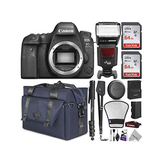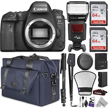 Canon EOS 6D Mark II DSLR Camera Body - WiFi Enabled w/Complete Photo & Travel Bundle - Includes: Altura Photo Bag, Flash, 2pcs SanDisk 64gb SD Card, Monopod and Neck Strap