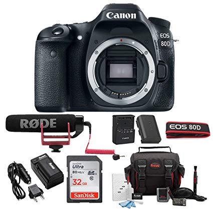 Canon EOS 80D Digital Camera: 24 Megapixel 1080p HD Video DSLR Video Creator Bundle with 32GB SD Card Rode VideoMic GO Spare Battery & Travel Charger - Professional Vlogging Sports and Action Cameras