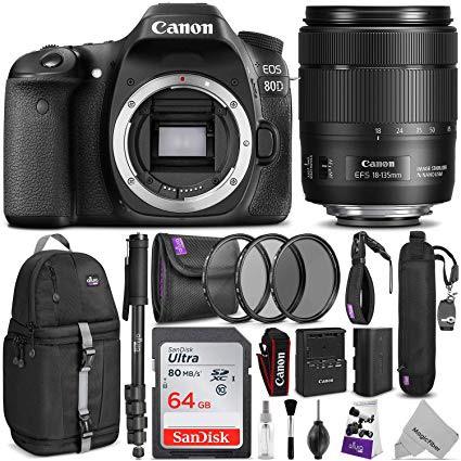Canon EOS 80D DSLR Camera with EF-S 18-135mm f/3.5-5.6 is USM Lens w/Advanced Photo & Travel Bundle - Includes: Altura Photo Backpack, SanDisk 64gb SD Card, Monopod, Filter Kit and Neck Strap