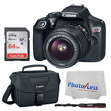Canon EOS Rebel DSLR T6 Camera Body + Canon EF-S 18-55mm f/3.5-5.6 IS II Lens + Canon EOS Shoulder Bag 100ES (Black) + SanDisk Ultra SDXC 64GB 80MB/S C10 Flash Memory Card + Deluxe Canon Bundle