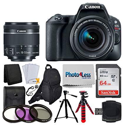Canon EOS Rebel SL2 Digital SLR Camera + EF-S 18-55mm f/4-5.6 IS STM Lens + Sandisk Ultra SDXC 64GB 80MB/S Memory Card + Accessory Backpack + Flexible Tripod + UV Filters + Card Reader – Valued Bundle