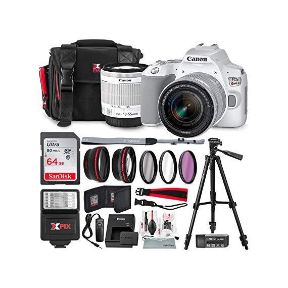 Canon EOS Rebel SL3 DSLR Camera (White) with 18-55mm Lens + Telephoto & Wideangle Lens + 64GB + Cases + Filters and Premium Accessory Bundle