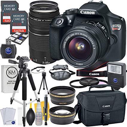 Canon EOS Rebel T6 DSLR Camera w/ EF-S 18-55mm Lens + EF 75-300mm Lens + 2 X 32 GB Memory + Premium Accessory Bundle