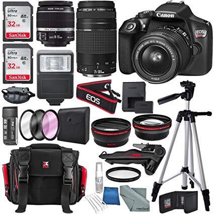 Canon EOS Rebel T6 DSLR Camera with 18-55mm, EF 75-300mm Lens, and Deluxe Bundle