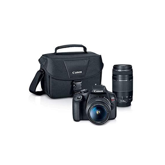 Canon EOS Rebel T7 Digital SLR Camera Body + EF-S 18-55mm f/3.5-5.6 IS II + EF 75-300mm f/4-5.6 III Lens + EOS Shoulder Bag + Transcend 64GB SD Memory Card + P4L Cleaning Cloth – Ultimate Canon Bundle