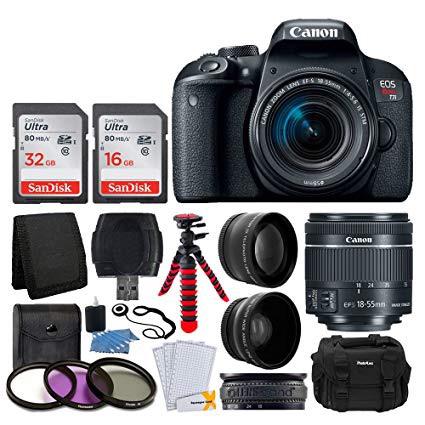 Canon EOS Rebel T7i Digital SLR Camera with EF-S 18-55mm f/4-5.6 is STM Lens + 58mm Wide Angle Lens + 2X Telephoto Lens + 48GB SD Memory Card + UV Filter Kit + Flexible Tripod - Full Accessory Bundle