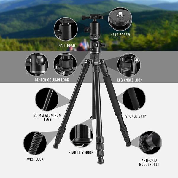 Canon T7 EOS Rebel DSLR Camera with 18-55mm and 75-300mm Lenses Kit and 67" Tripod/Monopod + AF Power Zoom Flash + 64GB SD Card Pro Photo Travel Bundle