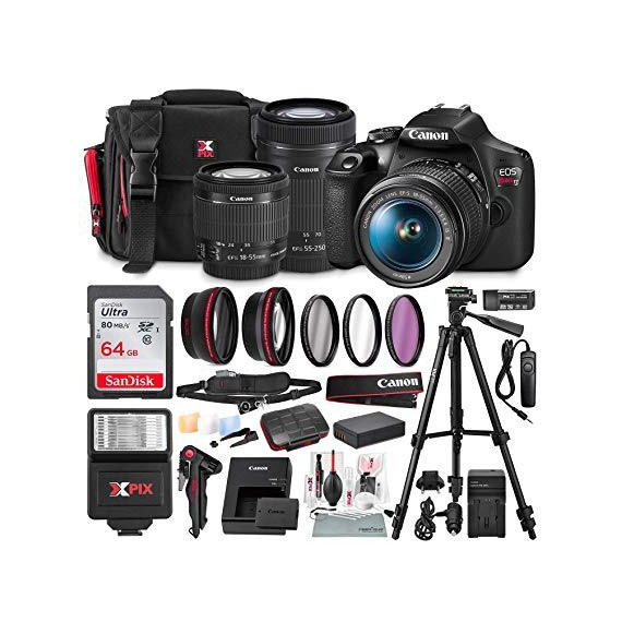 Canon T7 EOS Rebel DSLR Camera with EF-S 18-55mm f/3.5-5.6 is II and 55-250mm f4-5.6 is STM Lenses + UV Filter Kit & 64GB SD Card Deluxe Bundle